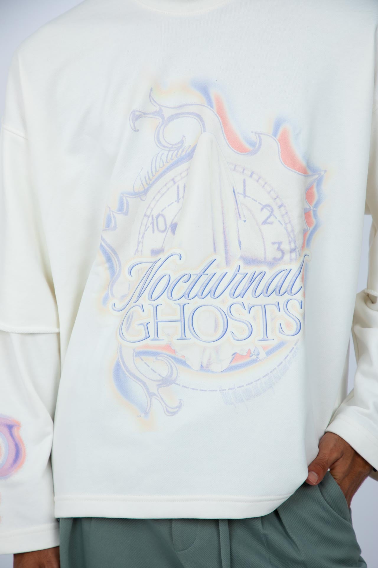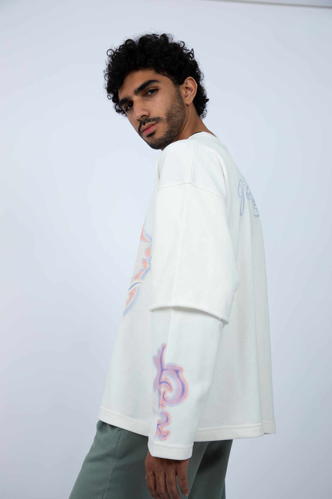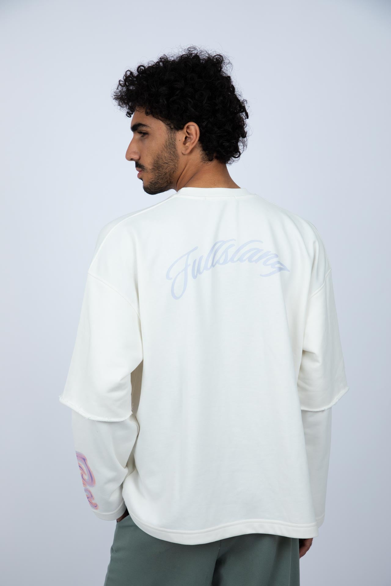 The White Long Sleeve double layered combines bold design with everyday comfort. Featuring an oversized fit, and layered sleeve details with a printed design on the front, back, and sleeves.