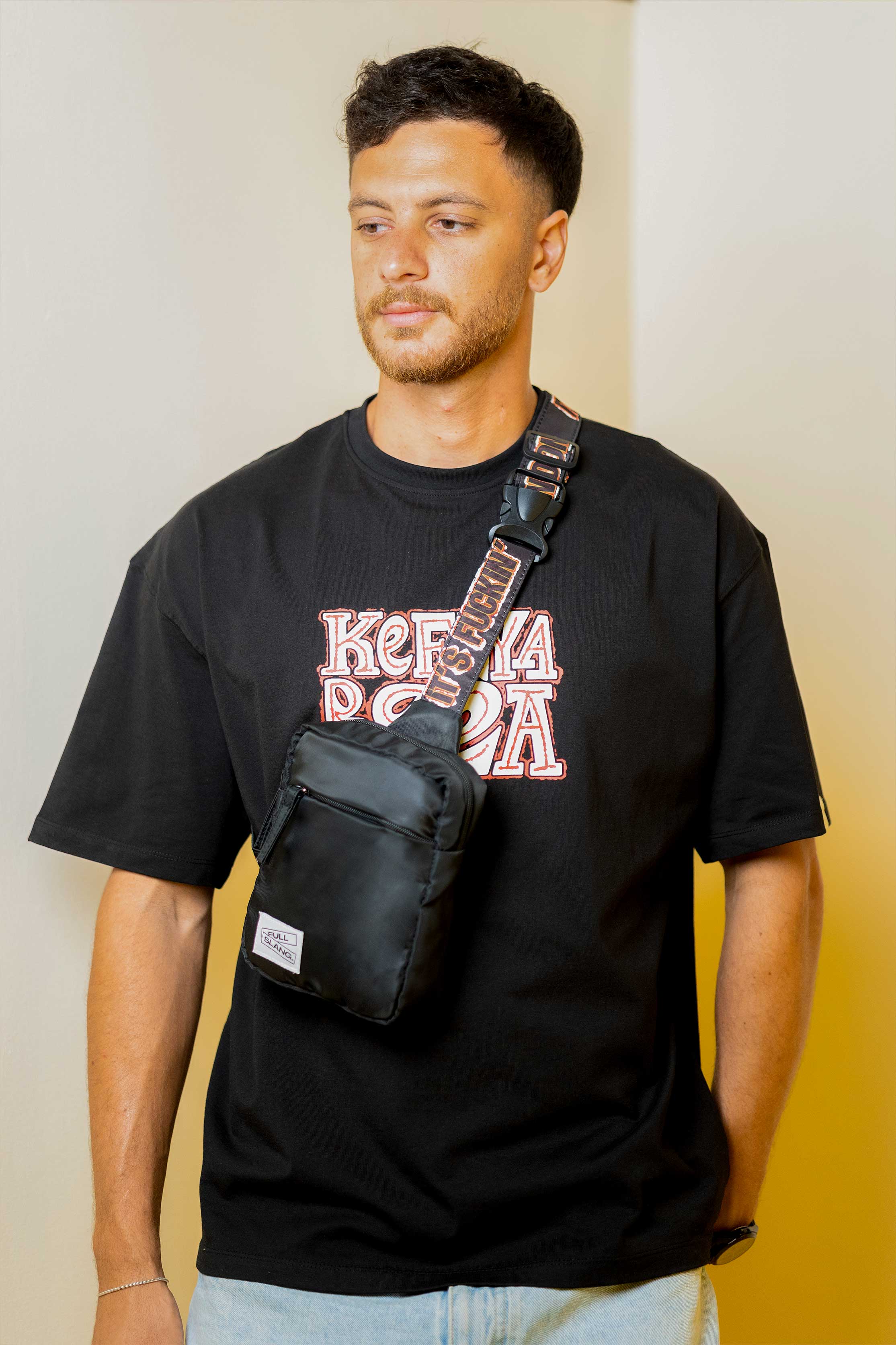 A unisex practical cross body bag made for big days' outs & abouts. Comes with an adjustable shoulder strap and front zip pocket.