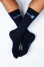 Made from elastic cotton for ultimate comfort and a perfect fit, Fullslang’s Navy socks bring the pop every fit needs. Comes with a cool can packaging!
