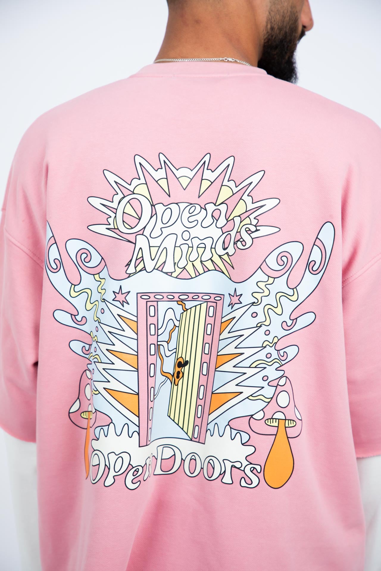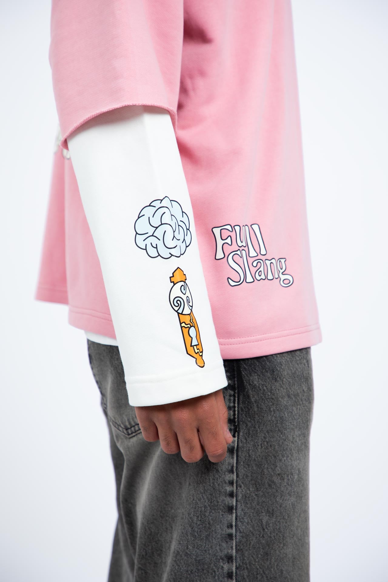 The Pink & White Long Sleeve double layered combines bold design with everyday comfort. Featuring an oversized fit, and layered sleeve details with a printed design on the back and design elements on the sleeve.