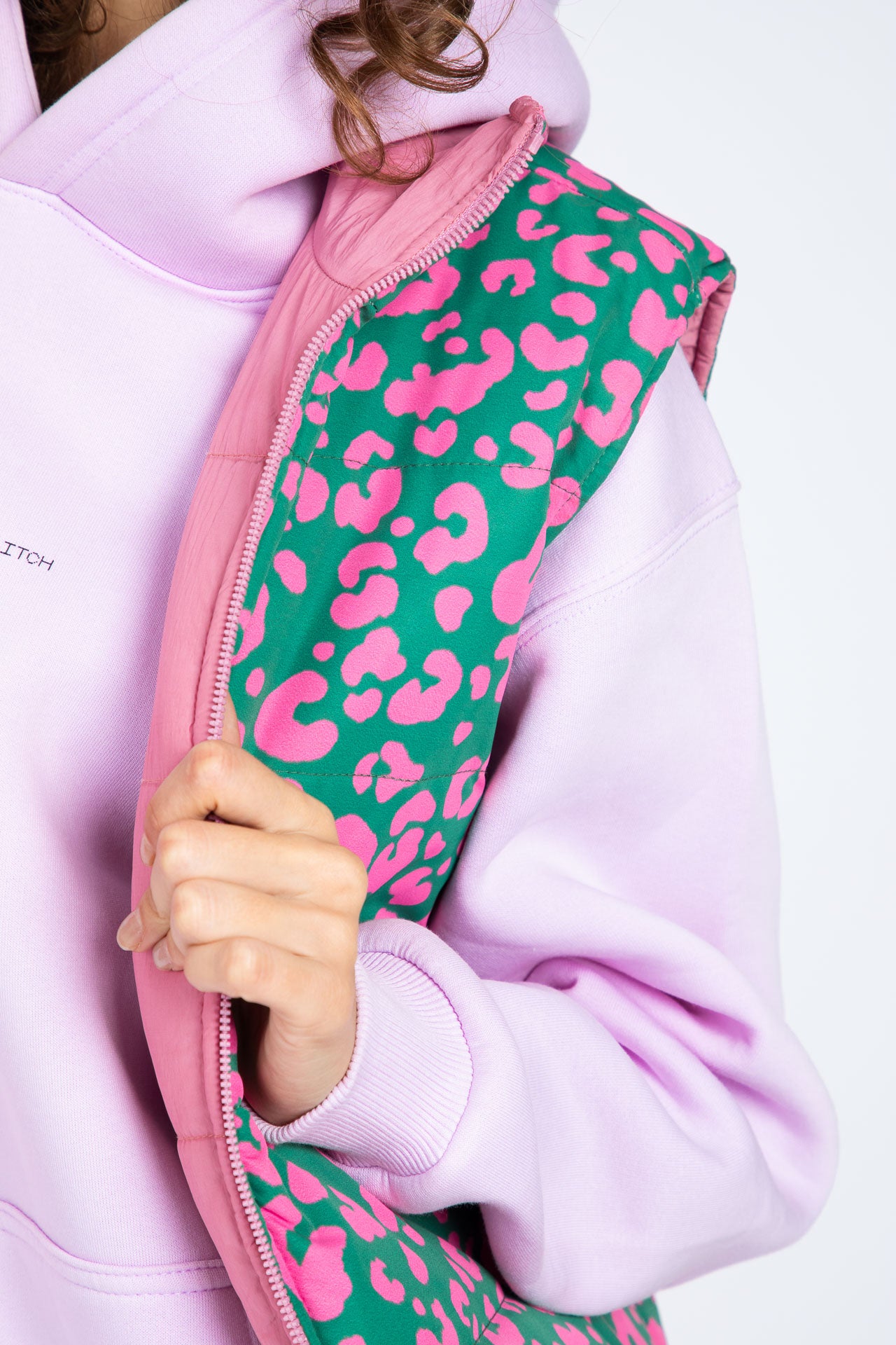 Get two looks in one with the Double-Faced Vest. One side is plain pink, while the other features a bold full leopard print design. Made with premium fabric and a relaxed fit, it’s perfect for winter nights out.