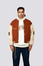 The Varsity Jacket brings old-school cool with a Gen Z twist. Designed in a Rust Bown body with Cream sleeves, this jacket mixes cozy and confident energy all in one fit. Embroidered branding on the front.